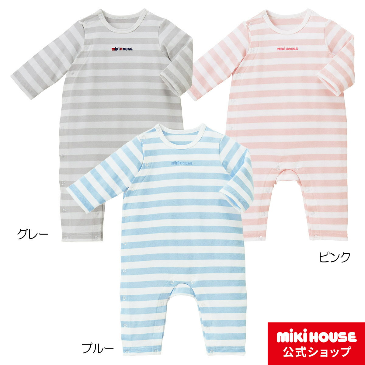 価格について メーカー希望小売価格はメーカー商品タグに基づいて掲載しています ※商品の質感・色は、お客様のご使用のモニターやブラウザなどの環境により、実物と異なる場合がございますので予めご了承ください。 ラッピングについて 商品説明ロゴ刺繍がついたパステルカラーのボーダーカバーオールです。着用期間の長さからもプレゼントにおすすめのアイテム。・通気性がよく、汗もしっかりと吸収し、洗濯しても傷みにくく型崩れしにくい素材。・サイドホックで股下まで開閉しおむつ替えやお着替えが容易。 取り扱い方法この製品には、刺繍による肌あたりを軽減するため、あらかじめ当て布加工がされています。ただし、接着による加工は・・・