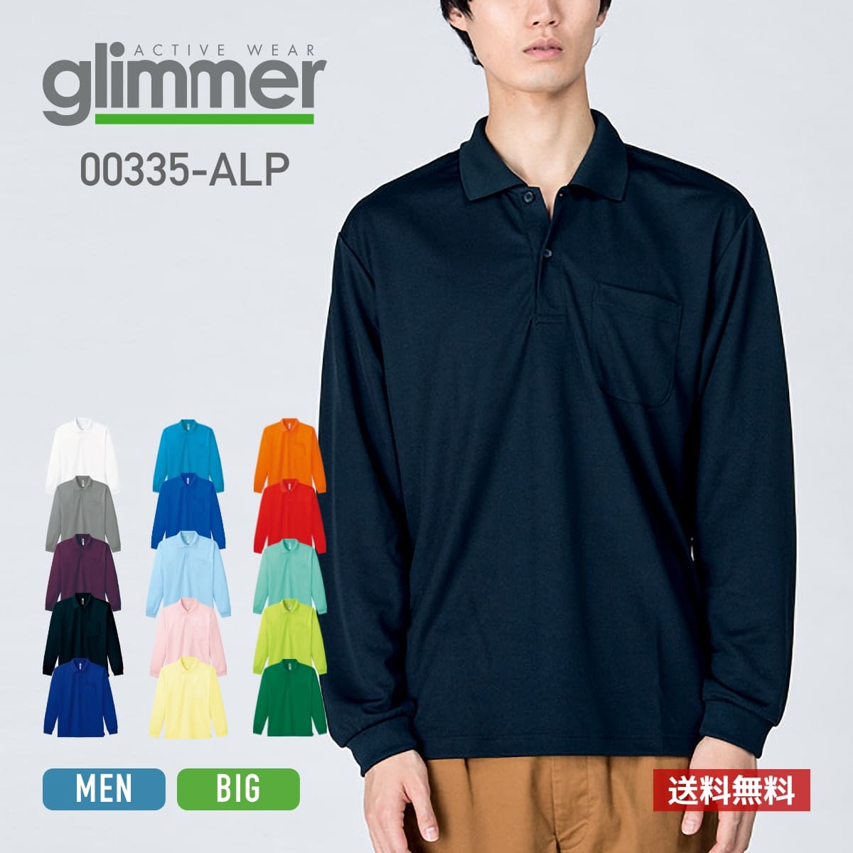 シャツ メンズ レディース 長袖 glimmer グリマー ドライ長袖 ポロシャツ ポケット付 00335-ALP 送料無料 男女兼用 大きいサイズ ユニセックス 春 秋 冬 ホワイト 白 ブラック 黒 グレー ネイビー SS S M L LL LL 3L 4L 5L 6L 7L トップス 仕事 吸汗 速乾 シンプル 制服