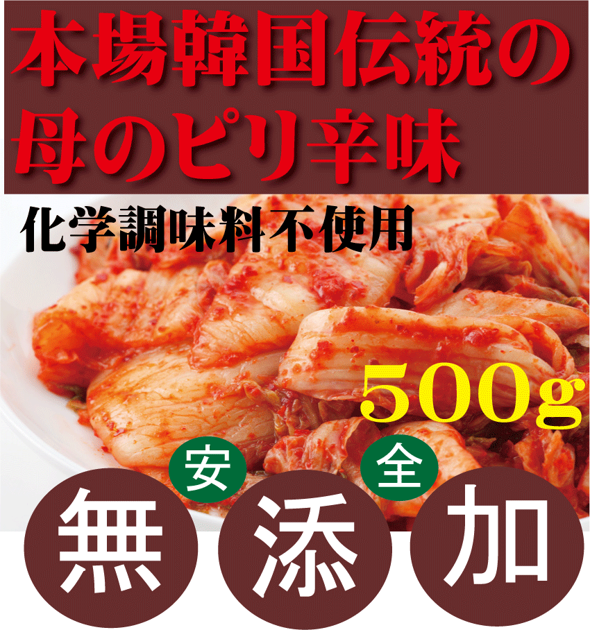 キムチ 保存料無添加 無着色 500g 高級 辛口 辛い 本場韓国 熟成 美味しい 王道 無添加キムチ にんにく 乳酸菌 本場 韓国 びっくり ヤンニョム 甘い こくうま 酸っぱい グルメ 保存料・着色料 無添加 キムチの素