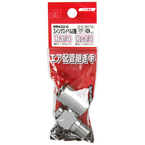 スイングスイベル2軸 1/4 SK11 RR622-C エアー配管やエアー工具の操作性や負担を軽減できるスイベルジョイントです。エアー配管継手(スイングスイベル)。 BFJ1039603