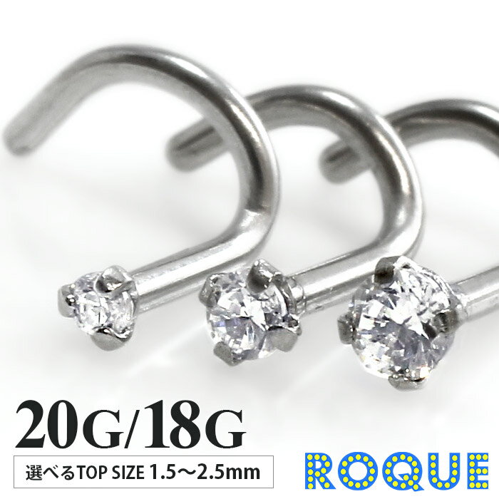 サイズ:20G(軸の太さ約0.8mm)軸の素材:サージカルステンレス316L(医療用)ジュエルの素材:キュービックジルコニアカラー:クリア3種類のデザインタイプと4種類のジュエルサイズからお選び下さい。サージカルステンレス316L(医療用)を使用しているので金属アレルギーの心配がほとんどありません。ジュエルの輝きが生かされる立爪タイプは、光を最大限取り込んで美しく輝きます。【デザインの特徴】スクリュータイプ…つけ方にコツがいりますが、安定感があり抜けにくく、慣れてくると装着も簡単。L字タイプ…ピアスホールに装着しやすく、着脱の際ホールに負担がかかりにくいピアス。スタッドタイプ…簡単に着脱できま・・・