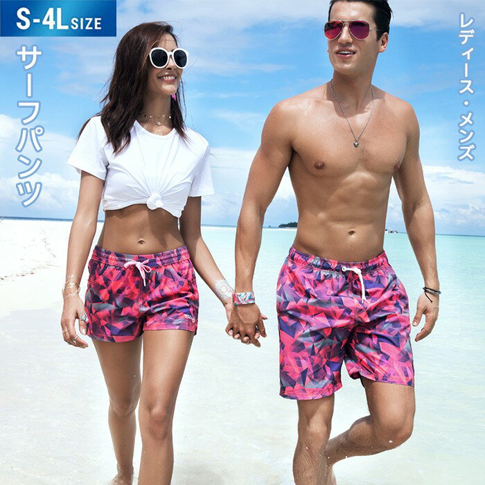 サーフパンツ カップル ペア 海パン 水着 メンズ レディース ビーチパンツ ピンク 総柄 ハーフパンツ 海 プール 温泉 スイムウエア 夏休み 水陸両用 ショートパンツ ご夫婦 ペアルック 海水パンツ 海水浴 リゾート 速乾 ビーチウエア 海外旅行 新婚旅行 1着 ds021d7d7lc