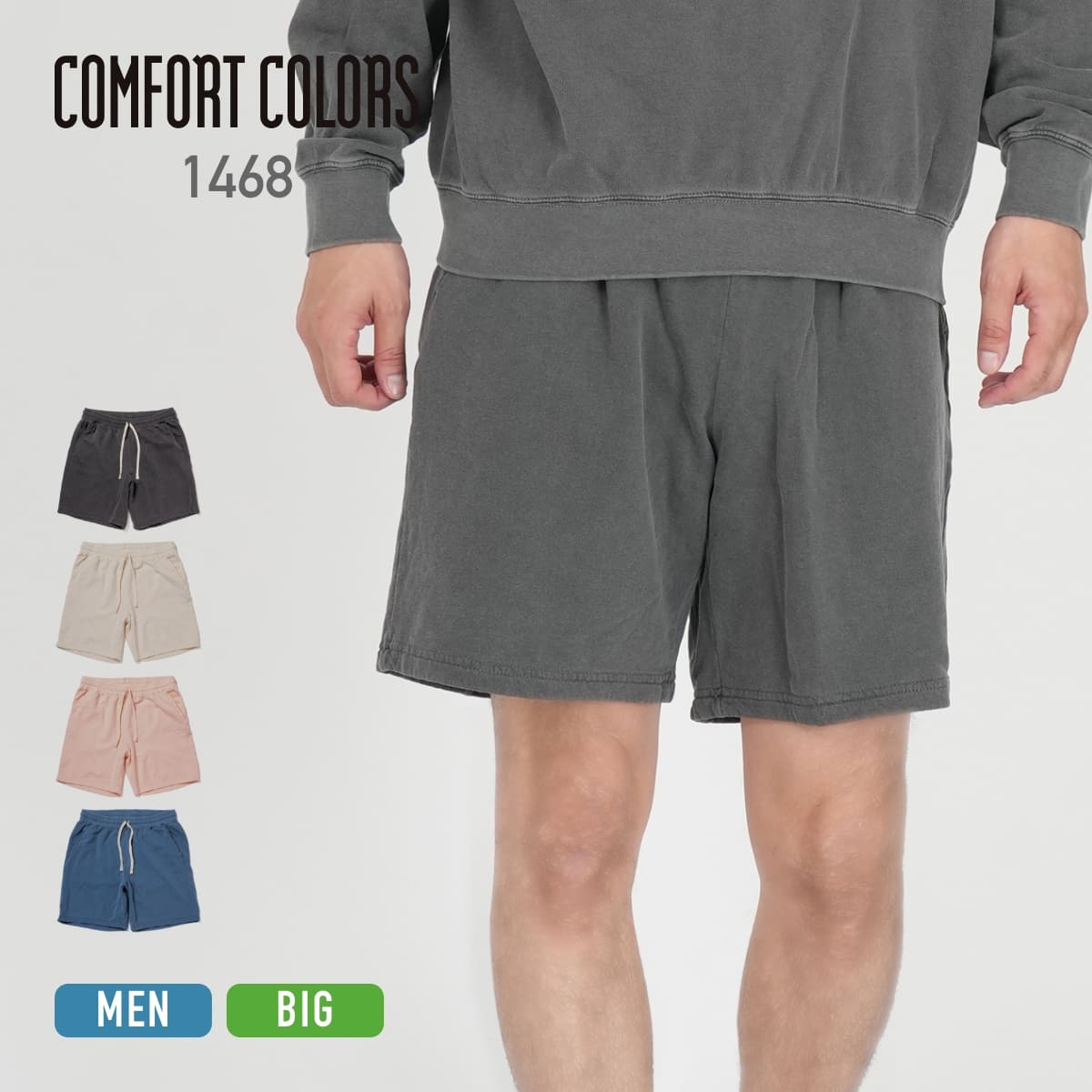 ハーフパンツ メンズ 長袖 Comfort Colors コンフォートカラーズ 6.4oz ガーメントダイ ライトウェイト スウェットショーツ 1468 男女兼用 ユニセックス 裏起毛 カジュアル シンプル チーム ユニフォーム コットン 薄手 秋 冬 ショートパンツ S M L LL XL 2XL