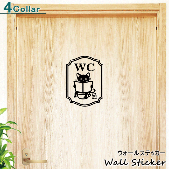 ウォールステッカー 猫WC・2 選べるカラー インテリアステッカー ネコ ねこ 猫シール ドアシール ドアステッカー トイレ トイレステッカー WC 装飾 アレンジ おしゃれ かわいい 猫好き 簡単 はがせる 屋内用 メール便 オリジナルデザイン