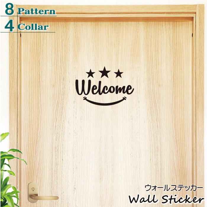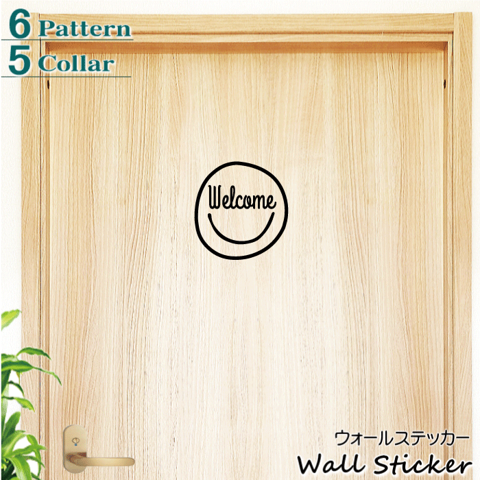 ウォールステッカー ラウンドフェイス はがせる ドアステッカー インテリアステッカー トイレ バスルーム キッズルーム レストルーム リビング ウェルカム おしゃれ かわいい シンプル 室内用 壁紙可 フチなし 転写ステッカー