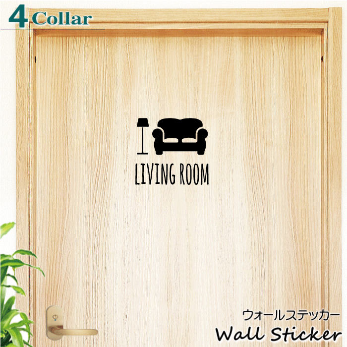 ウォールステッカー LIVINGROOM・1 はがせる ドアステッカー インテリア ステッカー 壁紙シール 壁紙OK 壁紙可 ルームサイン リビング シンプル かわいい おしゃれ 室内用 お部屋 転写ステッカー 簡単 お部屋シール