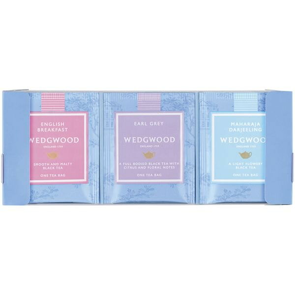 ●商品内容 イングリッシュ ブレックファスト・アールグレイ・マハラジャダージリン(各2g)×各3 ●パッケージサイズ:8×20×1.5cm ●賞味期限:常温3年 ちょっとしたお返しや贈り物にお勧め紅茶の国「英国」発祥のウェッジウッド。可愛らしい水色のパッケージに包まれたアソートティーバッグ。■紙箱に入った3種類の紅茶はちょっとしたお返しや挨拶の品としてお勧めです。■紅茶のシャンパンと呼ばれるダージリン、ベルガモットの爽やかな香りのアールグレイ、ベーシックな英国紅茶のイングリッシュブレックファストの3種入りギフト対応※商品は十分にご用意しておりますが、万一品切れの場合や、 やむを得ない事情により・・・